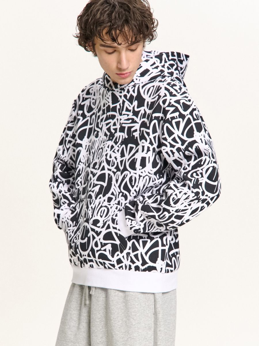 Mustriline kapuutsiga dressipluus