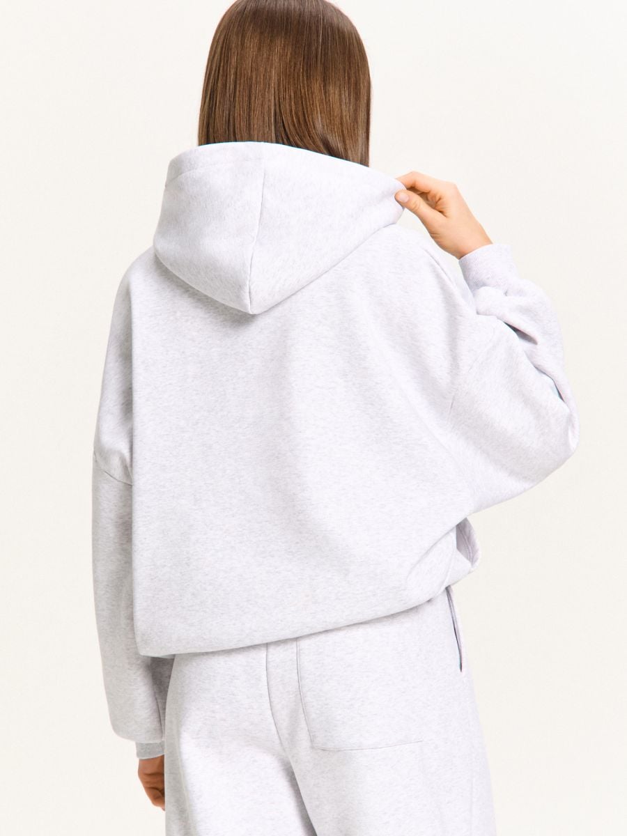 Mustrita kapuutsiga pluus