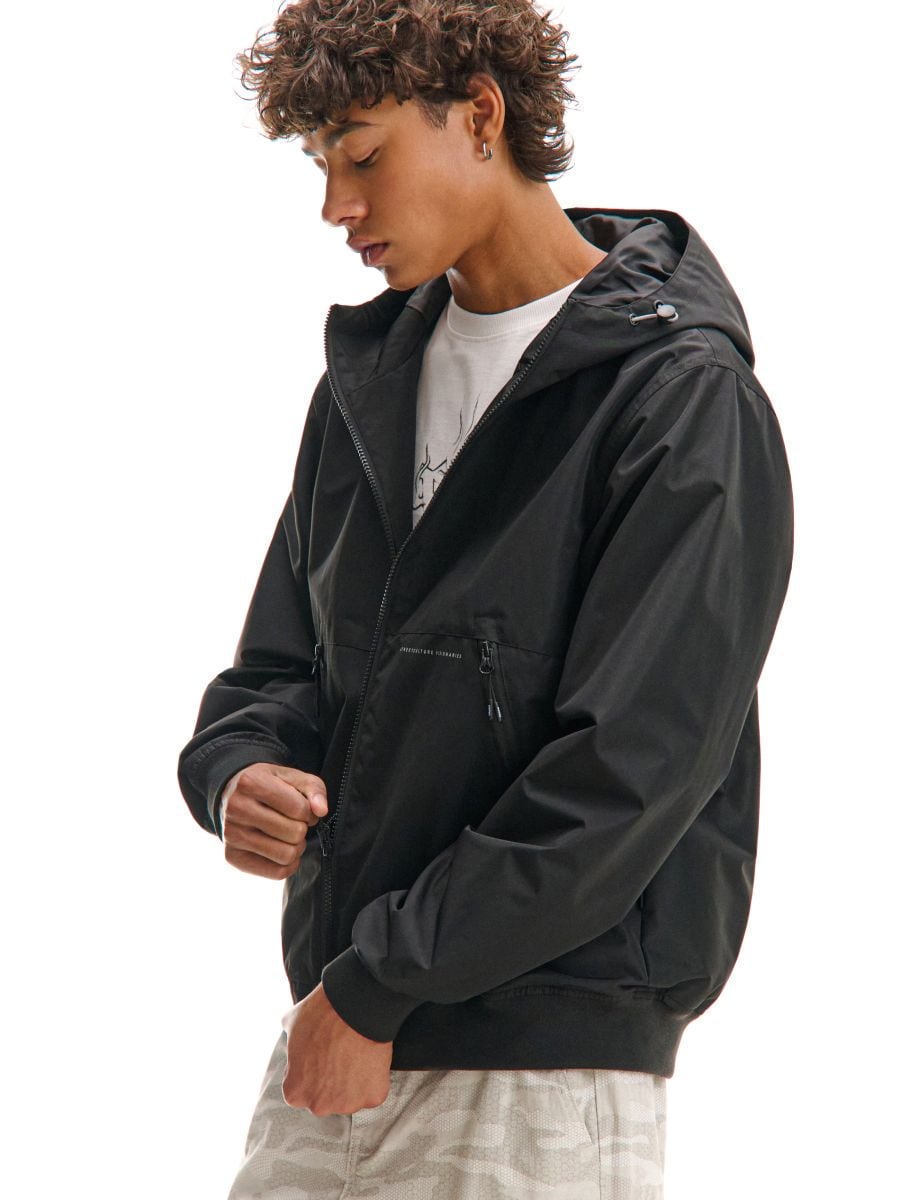 Μαύρο τζάκετ με κουκούλα