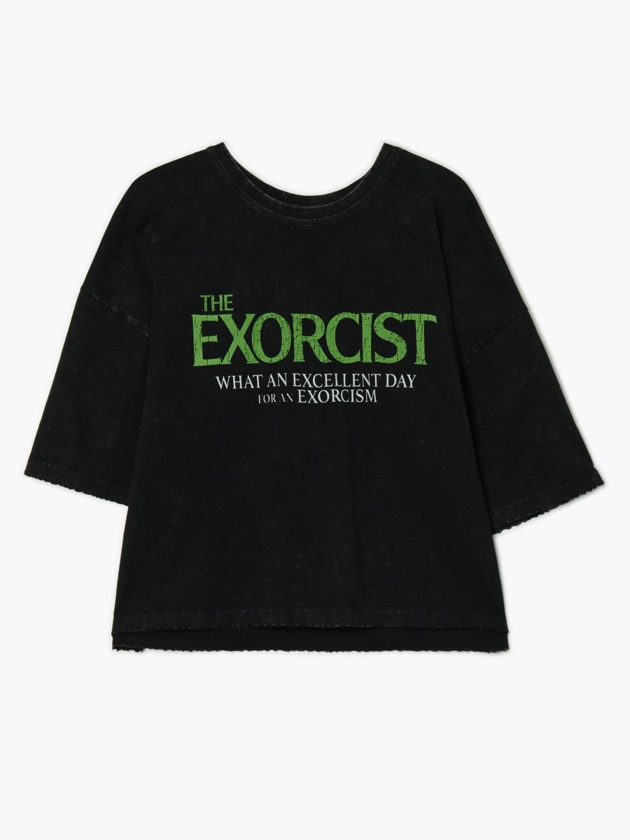 Nyomott mintás fekete póló The Exorcist