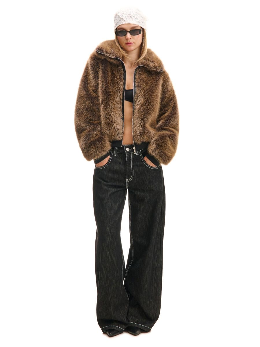 Brązowa kurtka bomber z imitacji futra