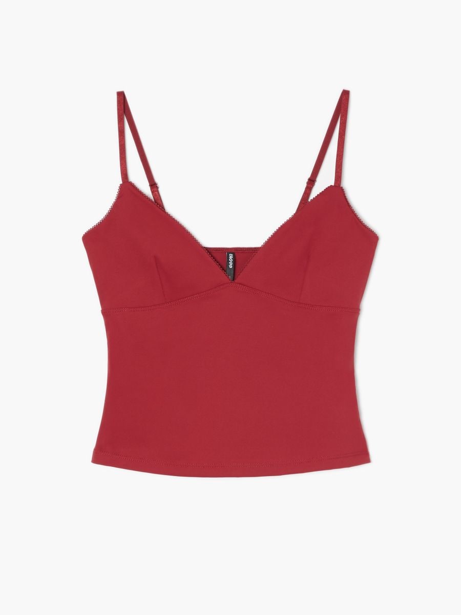Dopasowany czerwony cami top z koronką