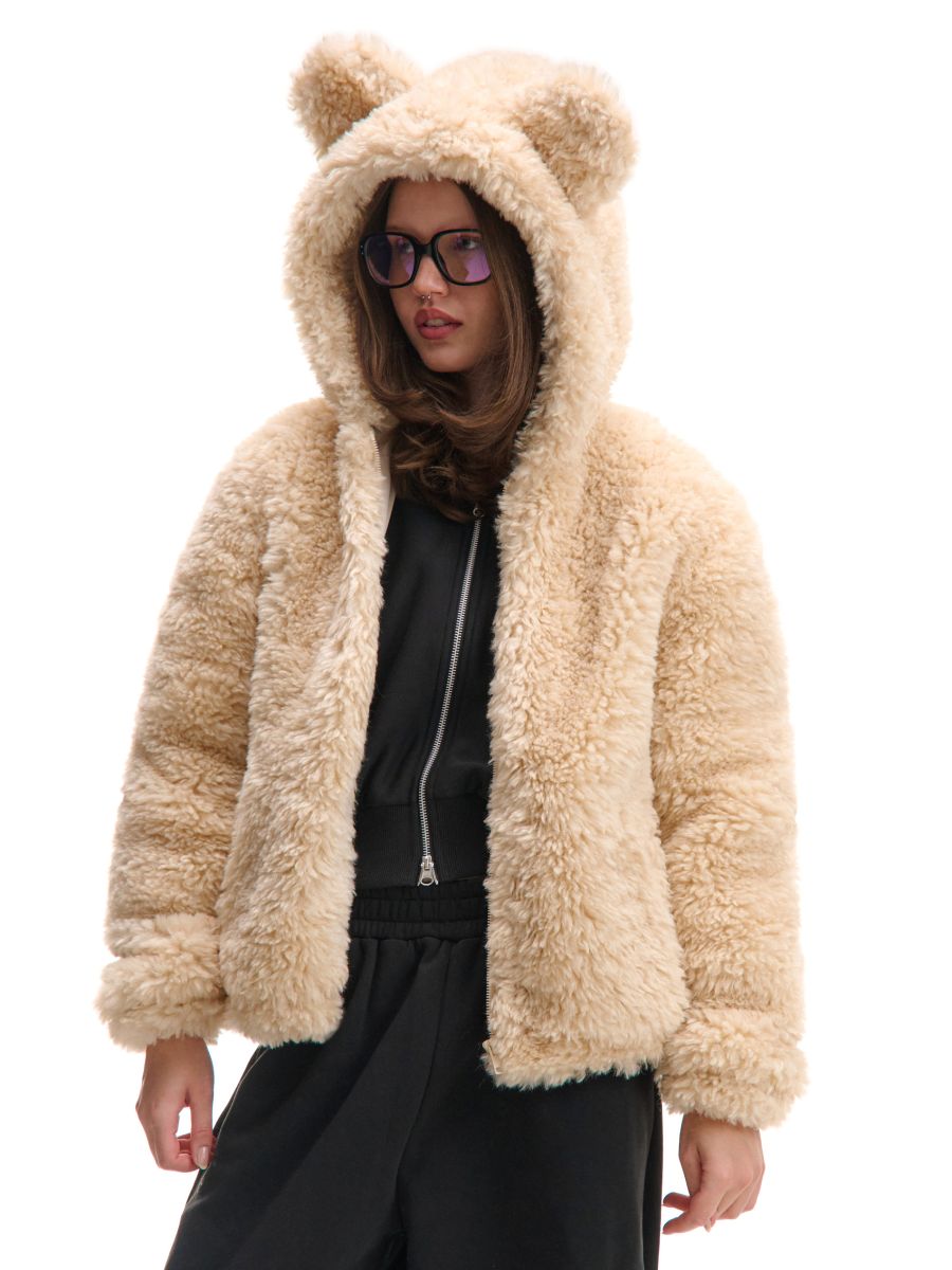 Kremowa kurtka sherpa z uszami misia