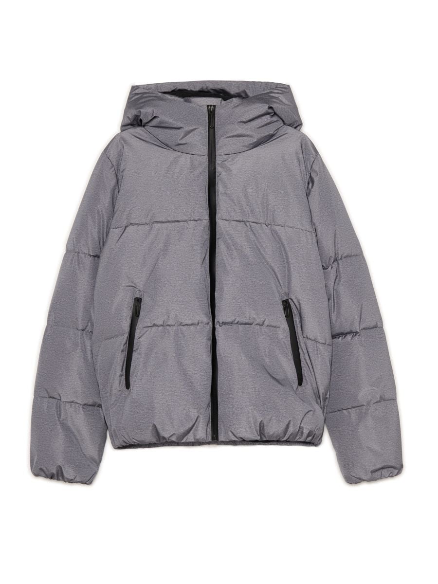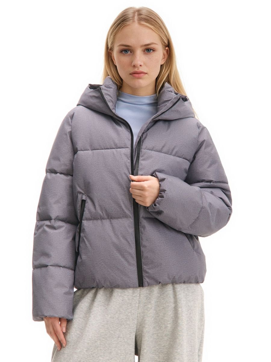 Pikowana szara kurtka puffer z kapturem