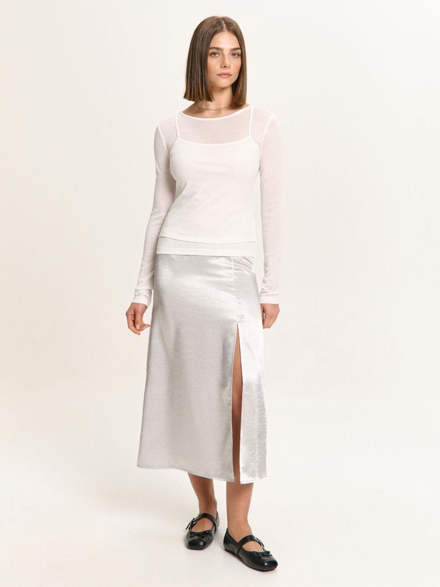 Satynowa spódnica z rozcięciem