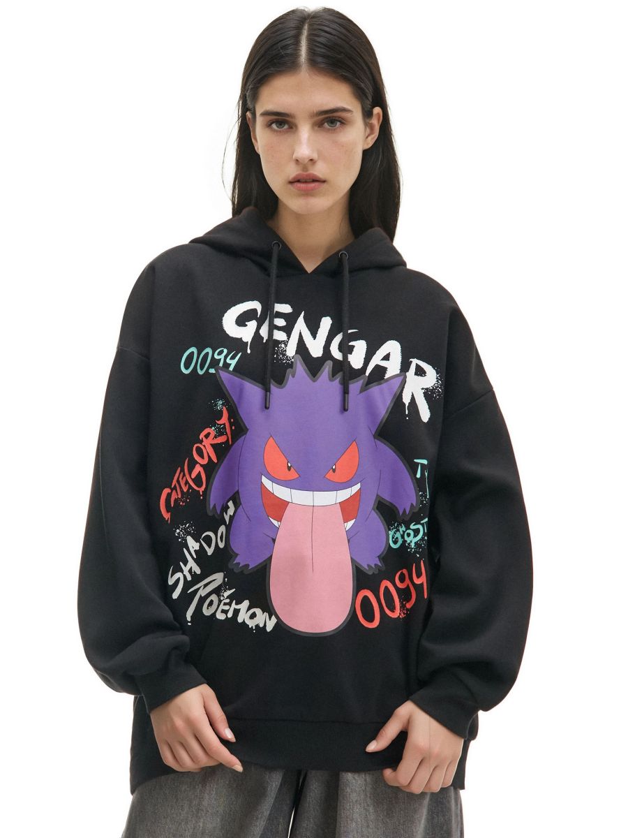 Crna dukserica s kapuljačom i printom Pokémon Gengar
