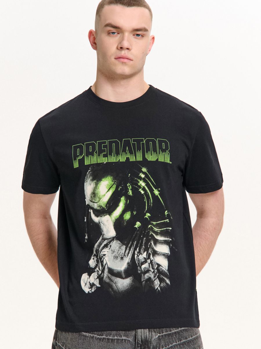 Črna majica s potiskom Predator