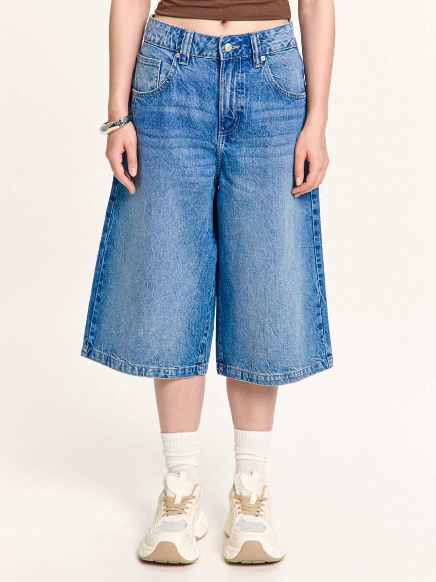 Denim kratke hlače z učinkom pranja