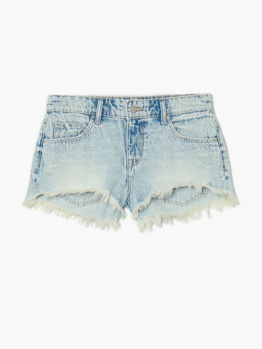 Denim kratke hlače z učinkom pranja