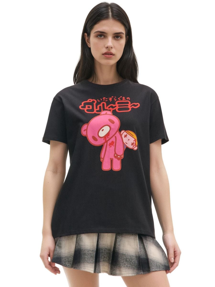 Чорна футболка з принтом Gloomy Bear